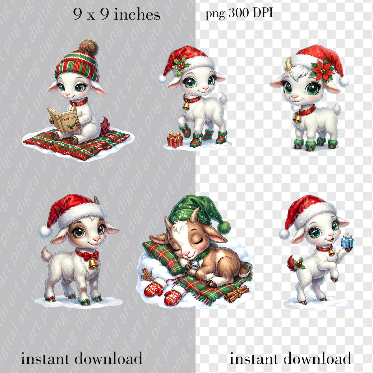 Christmas Goat Clipart Set, Cute Christmas Goat Images, Festive Holiday Decorations, Christmas Party Invitations