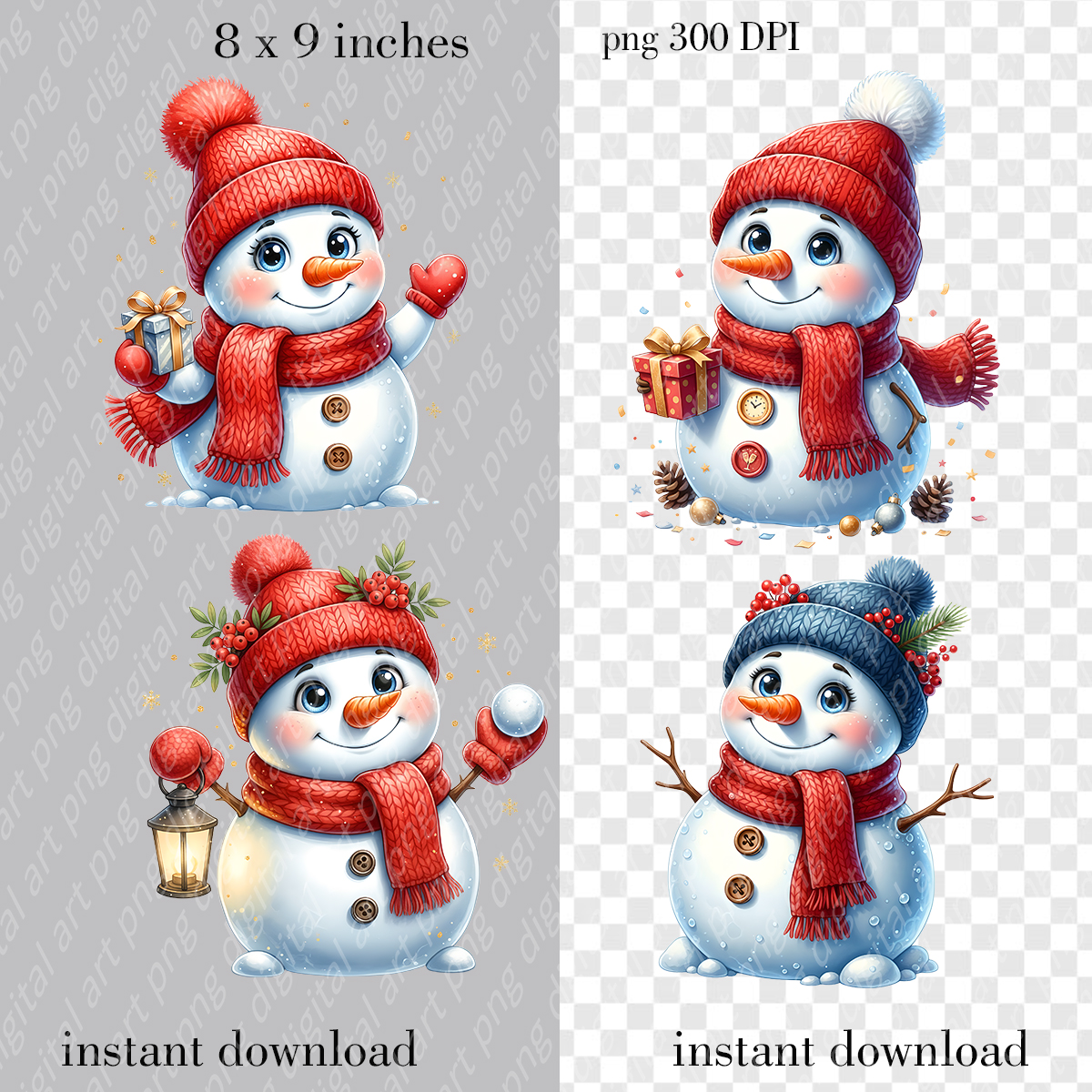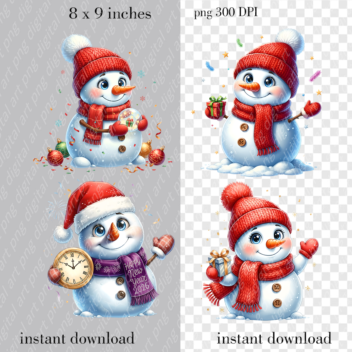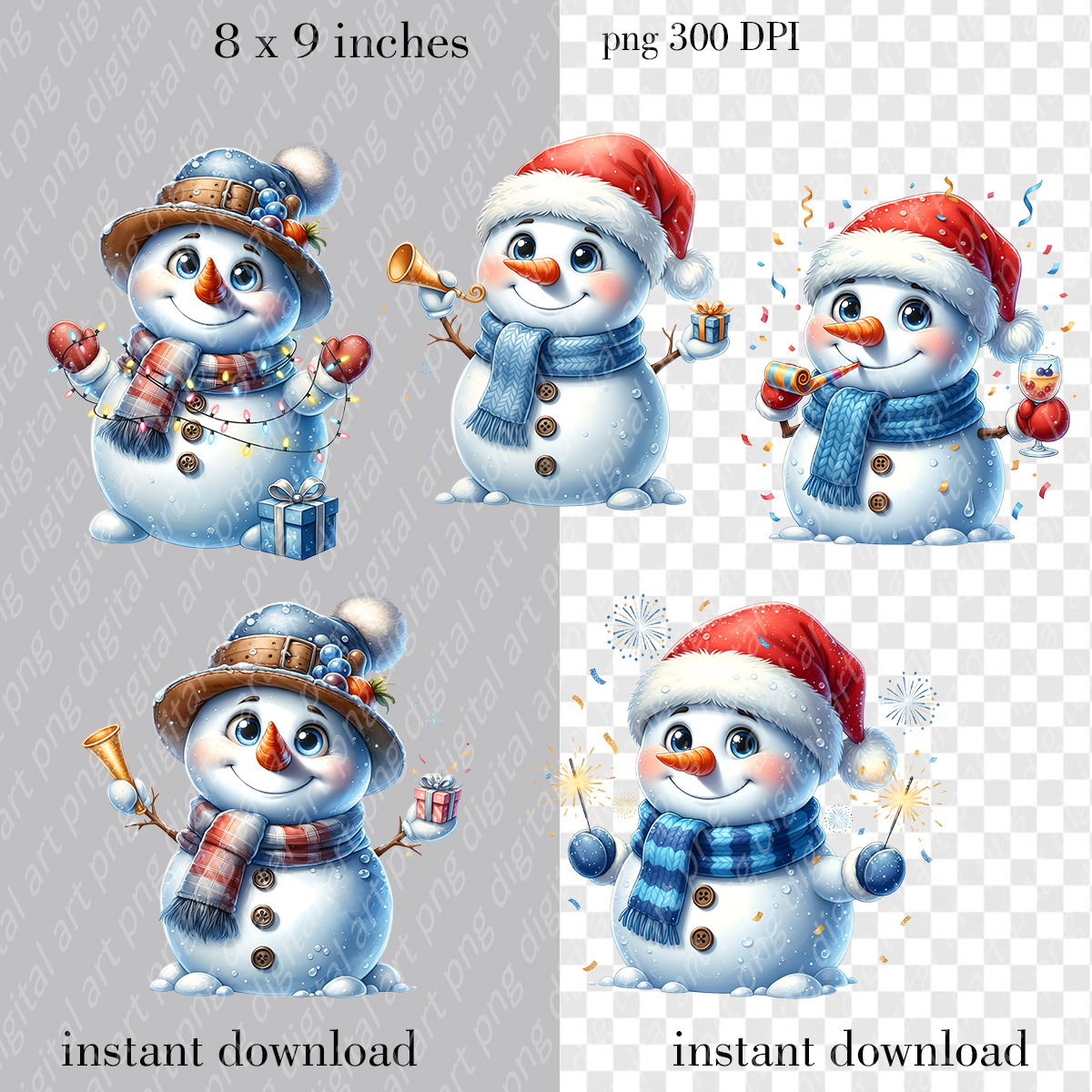 Christmas Snowman PNG, Cute Snowman Clipart Set, Winter Holiday Sublimation, New Year 2026 Clip Art, Christmas Decor, Digital Download, 300 DPI