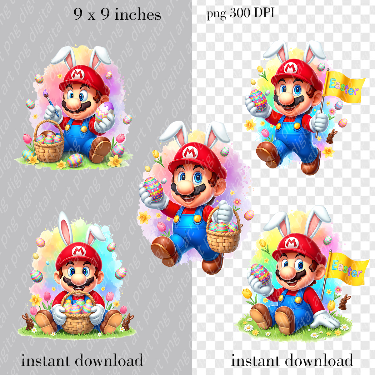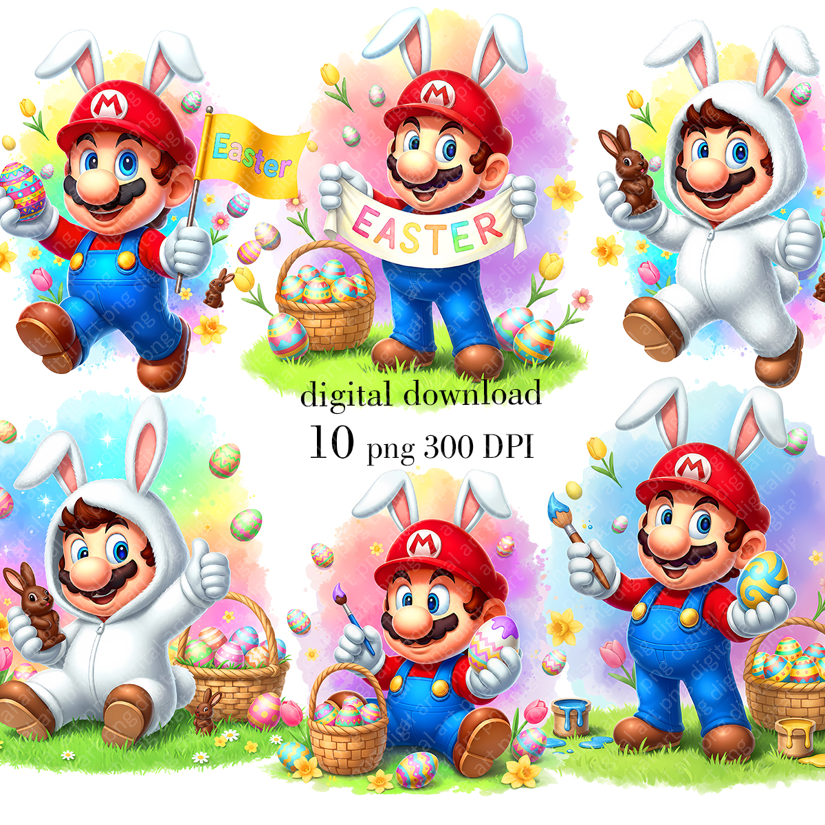 Easter Mario сlipart, 10 PNG Designs, Super Mario Easter Graphics for Sublimation