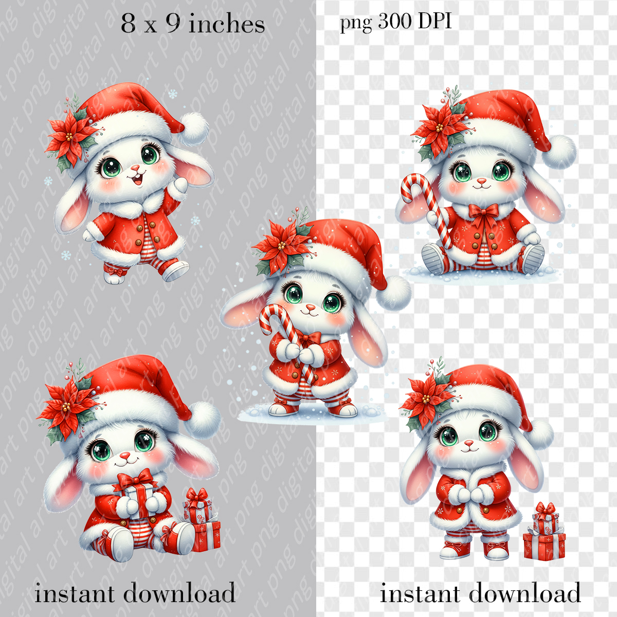 🐇New Year’s Bunnies Clipart, Christmas Bunnies Clipart Set🎅