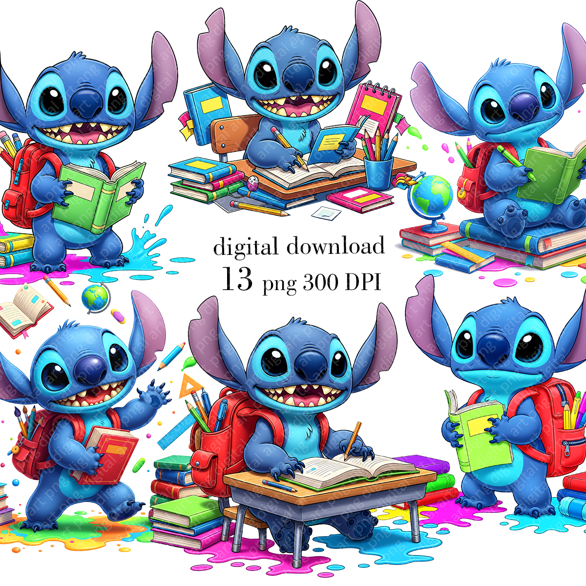 Get ready for back-to-school fun with this adorable collection of Stitch clip art! This set features everyone’s favorite mischievous alien, Stitch, in various school-themed scenarios. Perfect for teachers, students, crafters, and anyone who loves Lilo & Stitch!